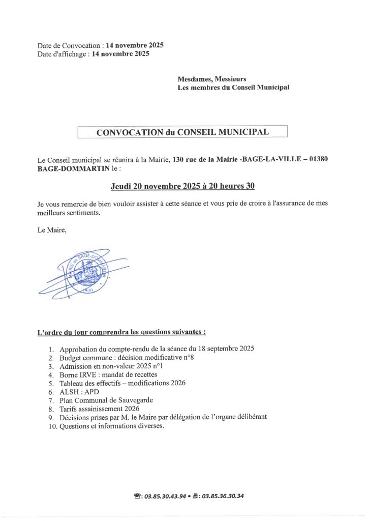 Prochain Conseil Municipal jeudi 20 novembre à 20H30