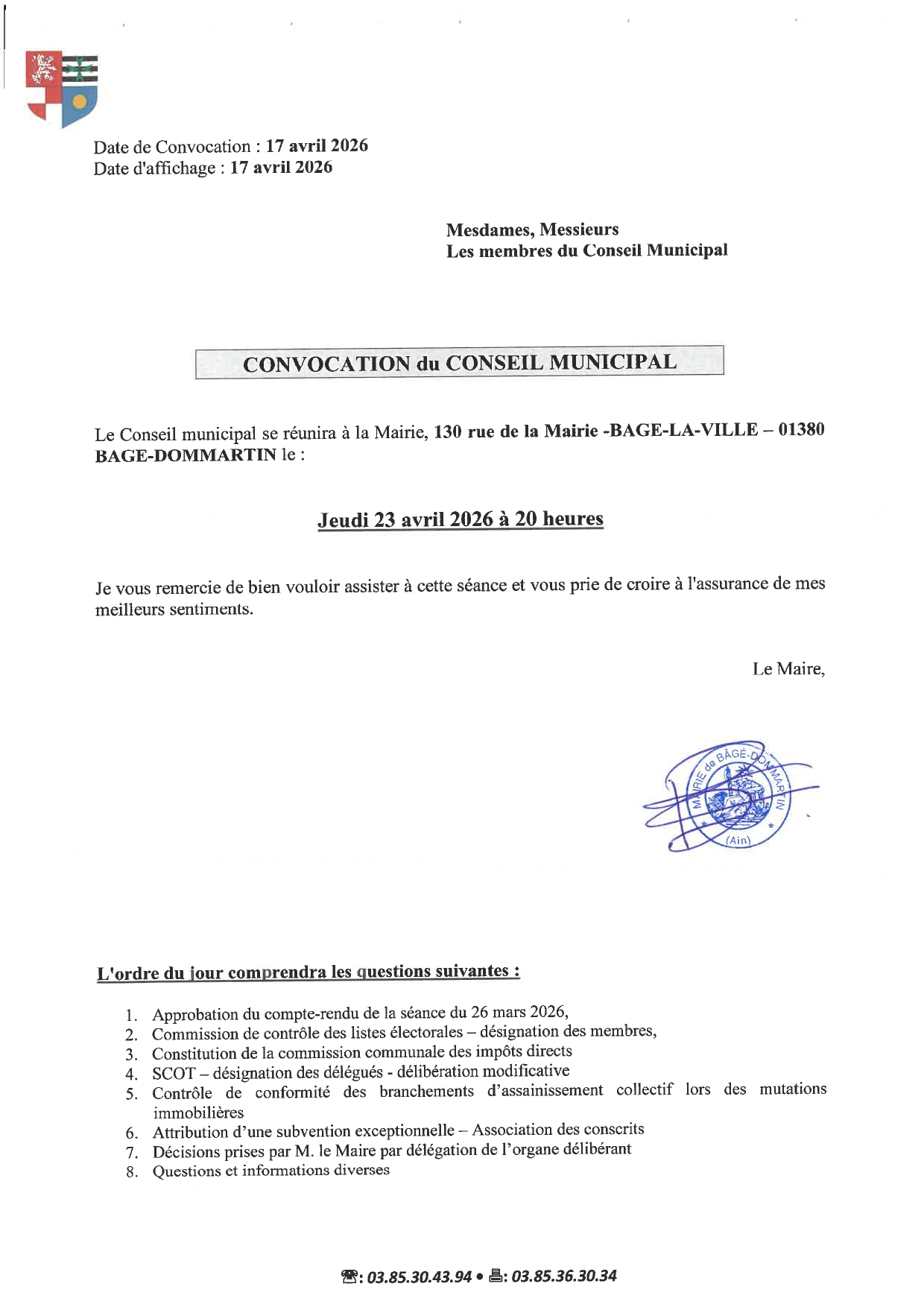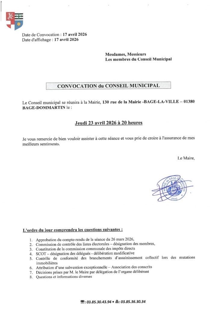 Prochain Conseil Municipal jeudi 23 avril 2026 à 20H