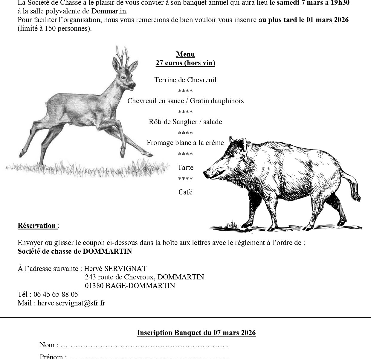 Banquet de la société de chasse de Dommartin – Samedi 7 mars 2026